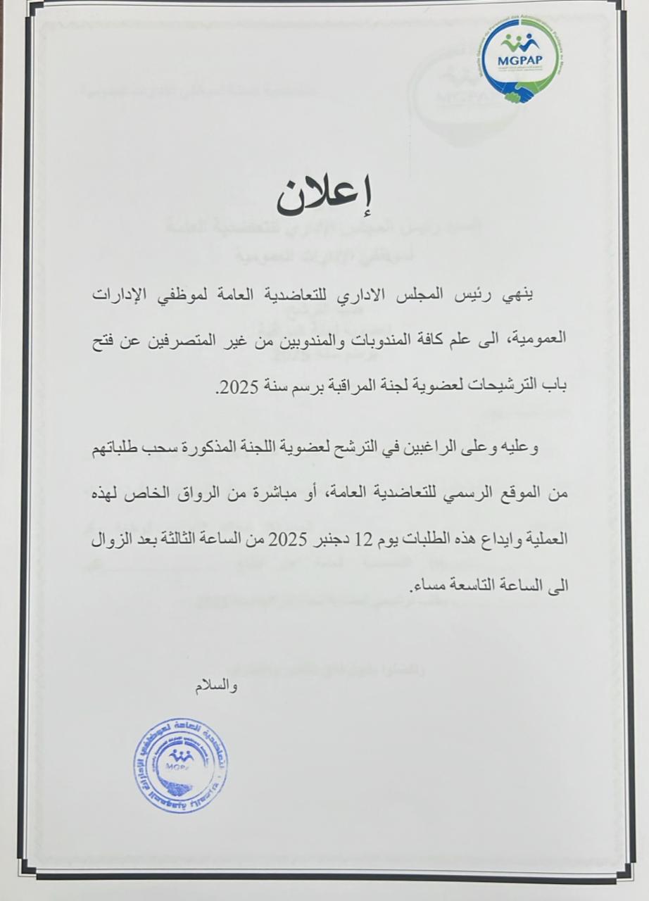 فتح باب الترشيحات لعضوية لجنة المراقبة برسم سنة 2025