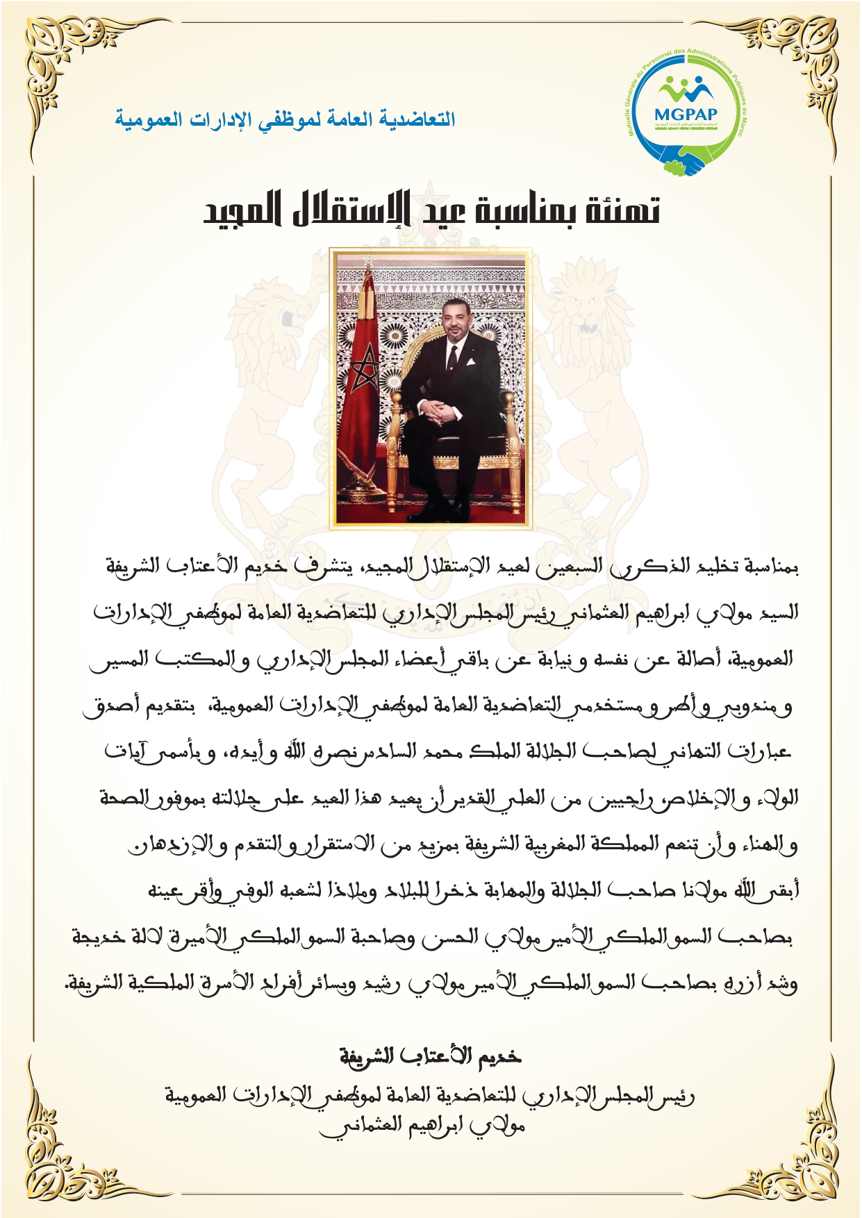 تهنئة بمناسبة عيد الإستقلال المجيد